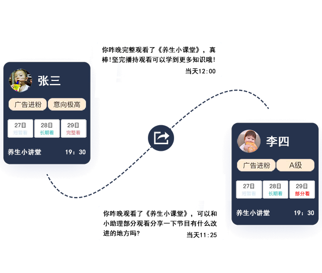 自动收集客户观看行为轨迹、时长,分析他们的偏好,为话术和营销策略调整提供依据,多样化的报表帮助你更好地运营