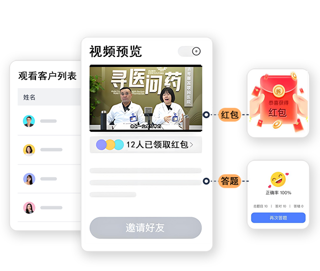 客户观看节目后答对全部题目,可以获得红包奖励,激发客户的观看热情,更多玩法持续更新